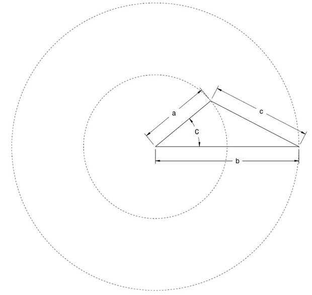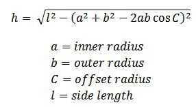 3) una Ley de cosenos y un Teorema de Pitágoras más tarde y tenía una fórmula útil para implementar en el software de CAD.