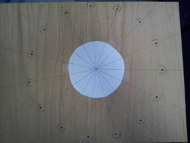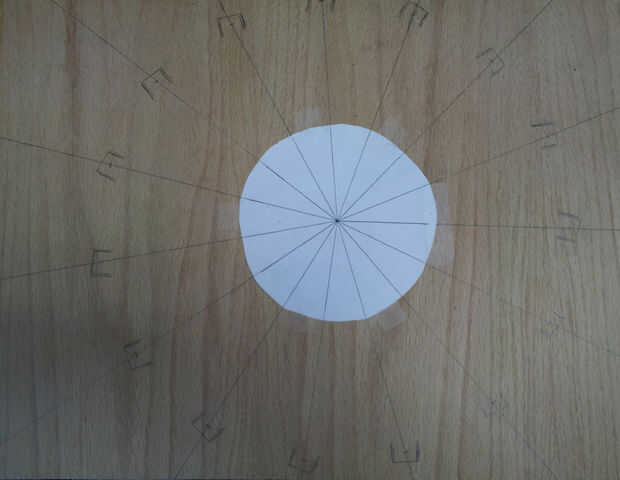 un) meter un pequeño agujero en el centro de las líneas radiales.