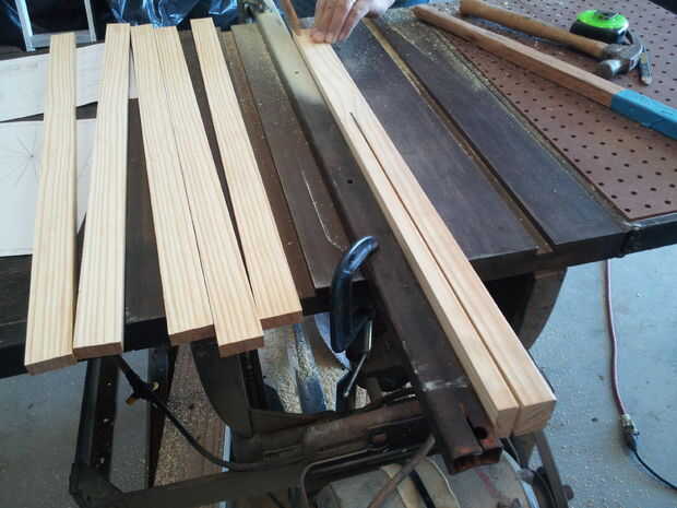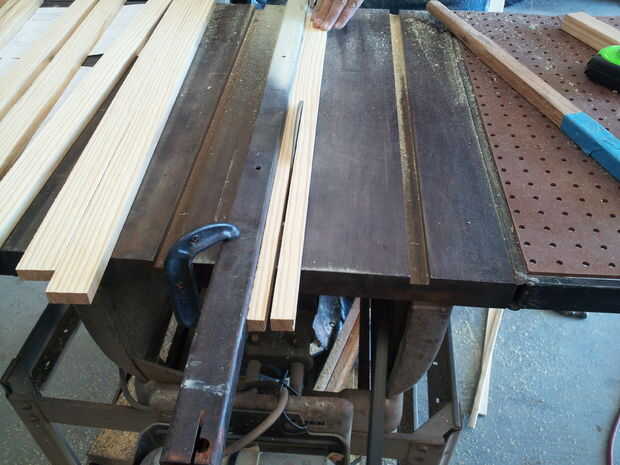 1 x 15) con lo 36 "x 18" pieza de madera, rasgar las piezas de la madera en tiras de 5/8 de pulgada. Foto 2