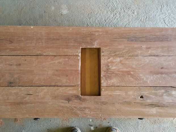 el agujero en la parte superior y debajo sólo tenía dos pedacitos de madera para las paredes que también ayudaron a fijar los deslizadores sorteo. Esto se hizo de redgum cubiertas, mismo material como el sorteo.