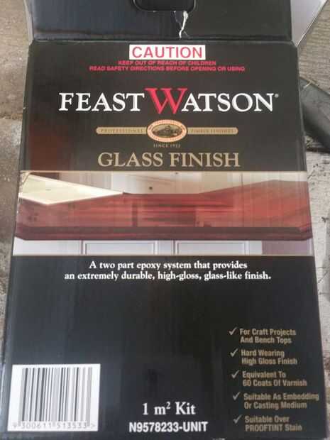 una vez había manchado la mesa usé un poxy para obtener un vidrio como revestimiento. Esto fue en dos partes y tuvo que ser vertido, mezcla y vierte sobre la superficie que luego se extendió todo por mí mismo. una vez difundirlo auto nivelado. me pegué cinta adhesiva en el exterior para evitar que cualquier líquido vertido sobre los lados.