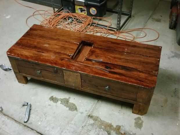mi esposa y yo recientemente se mudó de San Diego a Pittsburgh. Donamos un montón de nuestros muebles en California así que no tenemos que lo arrastrados 3.000 millas. Esto nos dejó muy mesa de café-menos para los últimos meses. ¡Ya no más! Hice esta
