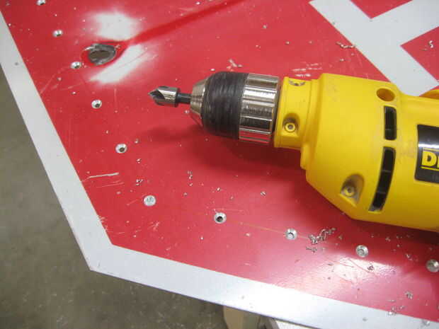 Donde los agujeros fueron perforados a través de la señal, fresas pequeñas quedaron en la parte inferior. Éstos fueron quitados rápidamente con una rotatoria pequeña herramienta de pulido.