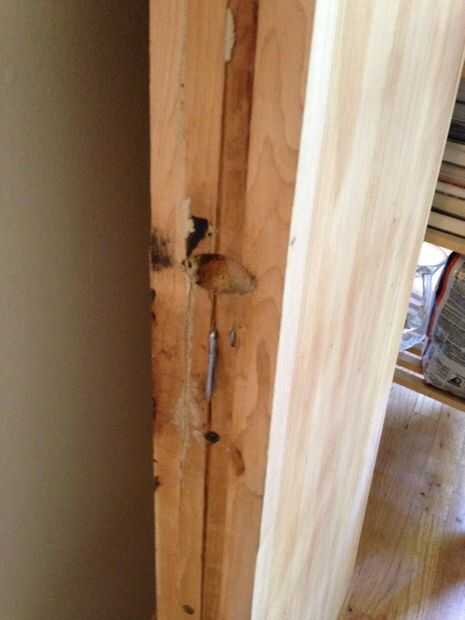 Luego medir agujeros y perforar a través de las barras con mi nueva broca. Tambaleó mis agujeros para que cada tira de la pista de bolera tiene al menos un clavo en algún lugar.