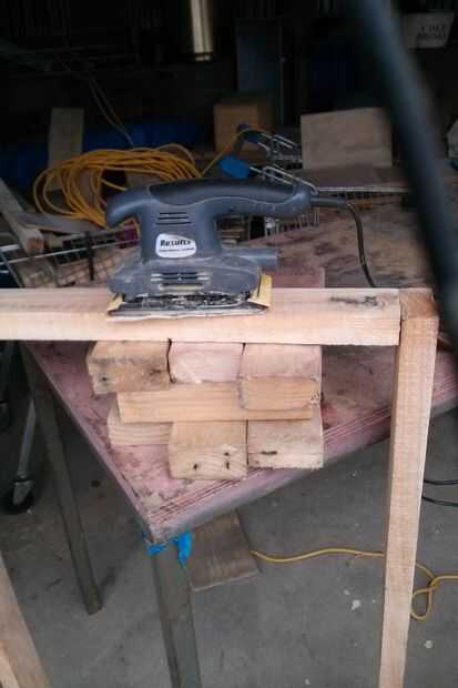 caminaba alrededor de mi centro local de reciclaje, tratando de copiar un instructible puesto para arriba por me ayudó a unas tiras de la plataforma que habían sido tiradas apartes. la madera era bastante irregular y áspera, que necesitan un lijado minucioso para llegar a un nivel aceptable. Que utiliza una pistola de clavos para armar un marco y lija todo otra vez.