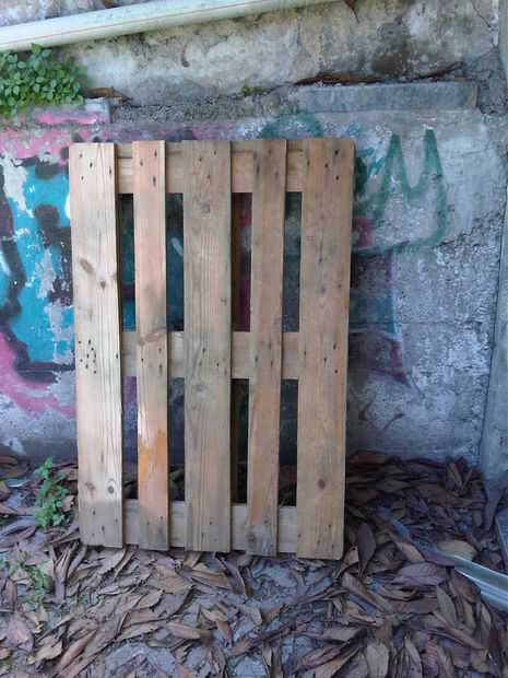 Fuimos a una yarda de la plataforma en las afueras de la ciudad donde había la posibilidad de elegir entre cientos de unidades. Finalmente conseguimos un EPAL (Europalet) 120 × 80 centímetros (31.50 × 47. 24in), que nos costó alrededor de 8$.