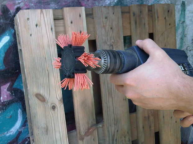 Made.com afirma que la explosión de los pallets utilizados para limpieza y acabado texturado. Históricamente, el medio más común utilizado para madera de alto es de arena. Sin embargo, hoy en día todo lo del bicarbonato de sodio por cáscaras de nueces a las hojas de maíz se utiliza la madera y crear una superficie con textura. Aunque tengo un compresor de aire y han intentado lijar superficies de metal antes, recuerdo que el proceso fue muy laborioso y polvoriento. Imaginar selección arena de cada crack, grieta, solapa, doblez, pliegue y orificio de su... ejem... cuerpo. Por no mencionar el tiempo pones en para quitar los granos enraizados el cuero cabelludo en la ducha. No es práctico en absoluto.