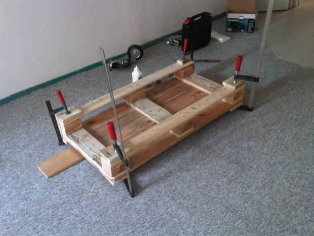La plataforma estándar del Euro era demasiado grande para nuestra sala de estar, por lo que mantiene la longitud de la firma de la tabla y había acortado el ancho. Todo que hizo simplemente fue cortado los tres listones de ambos extremos que sujetan los mejores cinco.