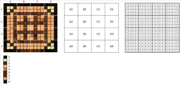 Cada 1 de las 16 hojas determinó que un cuadrado perfecto de un paladar de color asignado previamente para mantenerlo recto, utilicé una hoja de cálculo para las asignaciones de color. Mi adorable minion ayudó a extraer y del patrón.