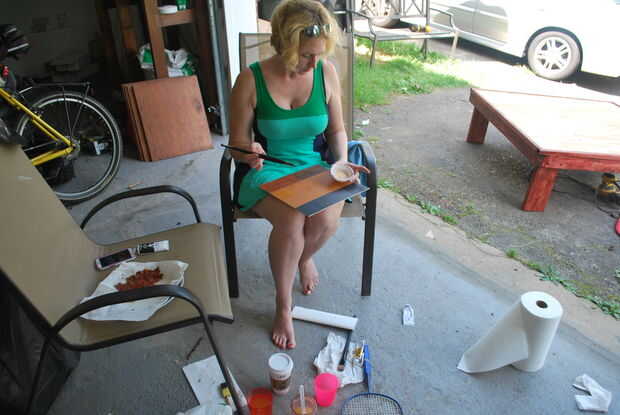 Seriously. Esto fue de mucha de la pintura. Ayudó a mezclar la pintura acrílica para la sombra necesitada y luego pintar todos esos números. Coincidencia de estas pinturas no es la más fácil, así que hacen mucho sentido para pintar cada número correspondiente en cada hoja para hacer los colores del patrón correcto la primera vez. (También, después de secar, toma la hoja y prueba su poliuretano y asegúrese de que no solublize el acrílico secado antes de pegar las piezas en la versión final).