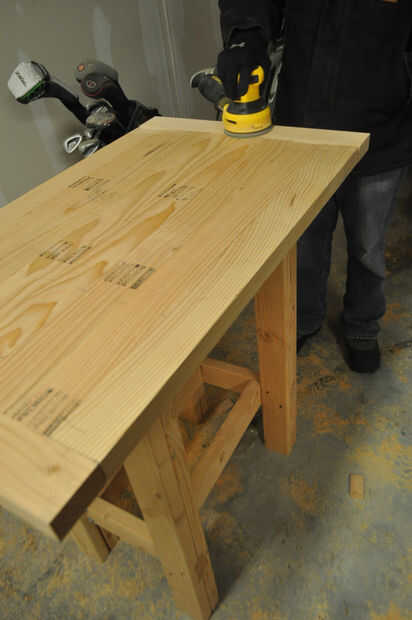 Primero usé un papel de lija áspero arena 2x4s puede ser más áspera madera. Luego trabajé mi hasta un grano de arena más fino para conseguir la madera lisa.