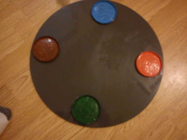 Usando el pegamento, aplique una capa delgada alrededor del borde inferior de la tapa de Pringle, dejando el borde hacia arriba. Cuando se pegan las tapas actuará como posavasos o bebida. A continuación, coloque la tapa pegada en la parte inferior de la superficie del espejo (lado reflectante hacia abajo) y presione hacia abajo cuando feliz con posición (he elegido poner cerca del borde pero propia preferencia es fineza)