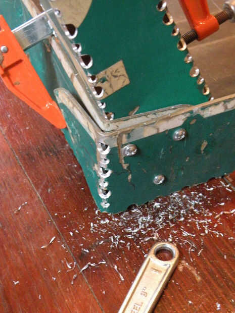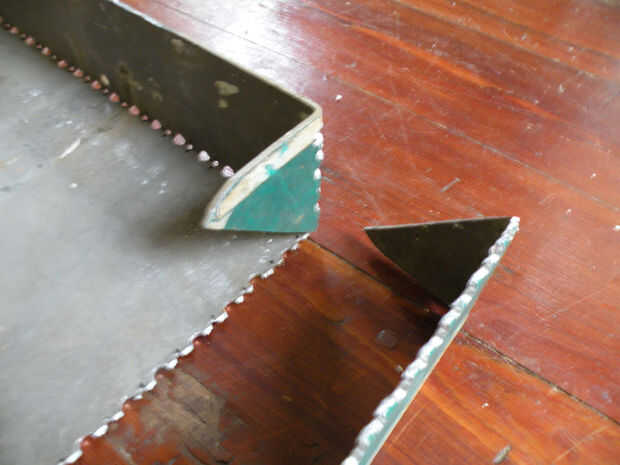 Es bastante sencillo; tres tornillos por el lado corto de la parte superior en el lado de las patas, y dos pernos en el lado largo. Cada perno hace deber doble, asegurar las patas al cuerpo de la tabla, así como asegurar las curvas de la esquina de la parte superior a sí mismo.