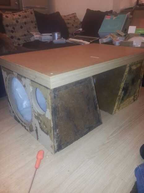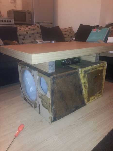 usando los submarinos desmantelados y las parte superior, tabla piernas para decidir sobre la colocación y altura de la mesa