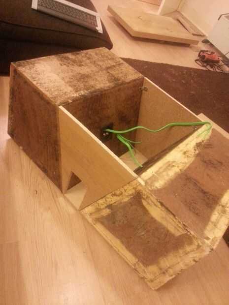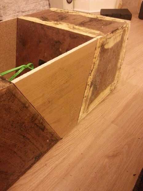 Para unir los 2 subwoofers clavado a un pedazo de chatarra MDF de 12 mm (ish) en la parte inferior de los dos submarinos.
