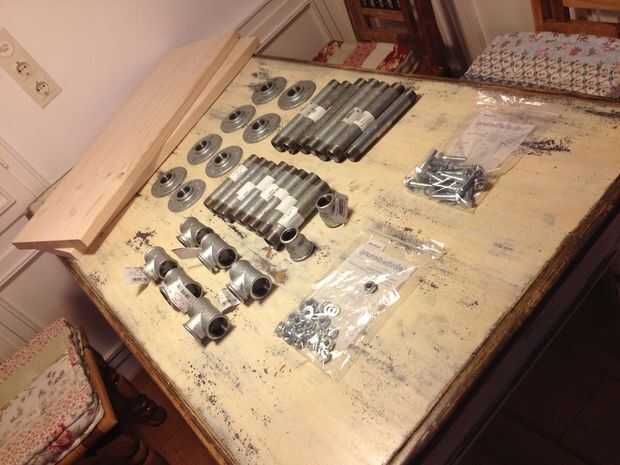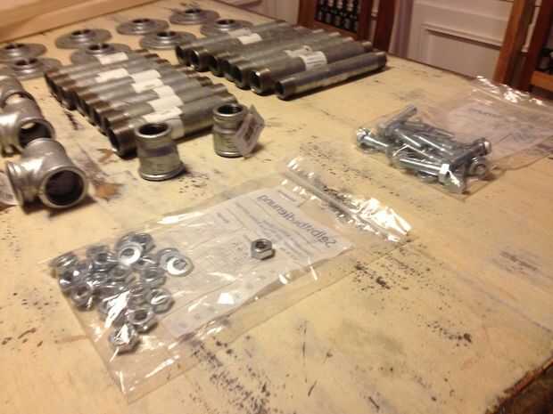 Compré la mayoría de piezas de tuberías y componentes/mobiliarios de local diy que almacenar (pensé) que necesitaría construir el marco de la tabla