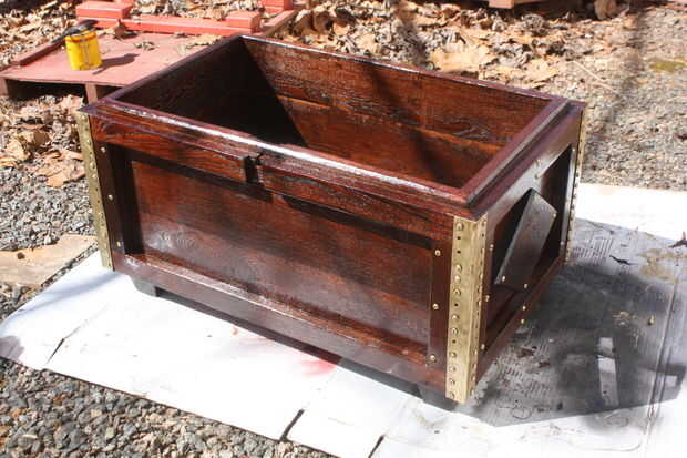 Como se puede ver, quité la tapa para facilitar el acabado de las superficies un poco. Esto también asegura que lo no accidentalmente hice poliuretano sobre las bisagras, como esto haría duro.