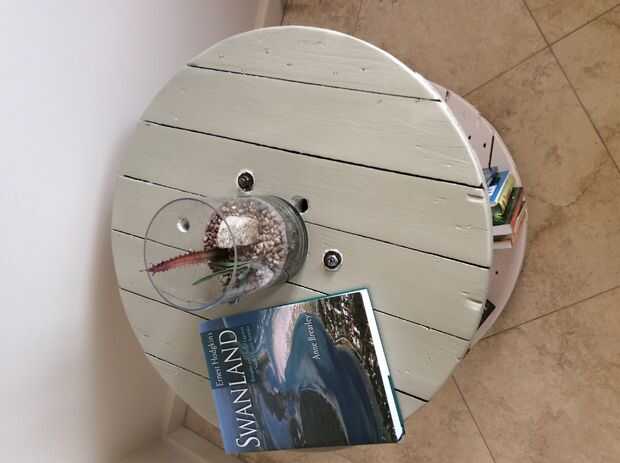 me las arreglé para conseguir un tambor grande que estaba en bastante bien nick y decidió probar un hacen una mesa al aire libre.Materiales1. gran tambor2. lijar materiales3. lana de acero 0000, vinagre y té para la mancha4. poli Marina5. pinturaHerr