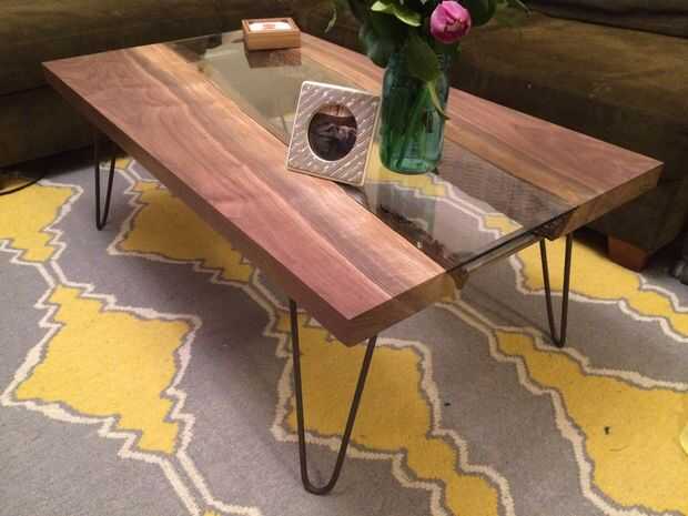 La madera era sourced localmente, corte, trazada para el vidrio de la inserción, lijado y acabado. Las patas de la horquilla se corte, dobladas y soldado con autógena en los soportes montados debajo de la mesa. Usted puede comprar las patas de la horquilla (en línea, en tiendas de carpintería local, etc.) en lugar de ello, pero hemos querido hacer todo desde cero. Finalmente, la lámina de vidrio fue comprada, corte, destrozada, compró una segunda vez, cortar con éxito y encajar en su lugar. Eso es todo!