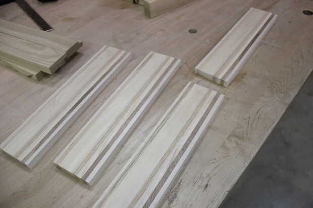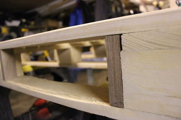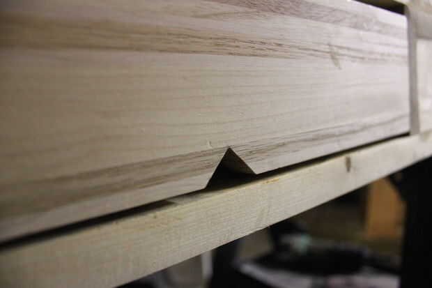 Para empezar, en esta tabla, he utilizado 2 pedazos de nuez en cada lados de mis cajones. Creo que hacen un bonito contraste. Si va a hacer lo mismo, es el primer paso para los cajones, como establecerá la anchura de su cajón.