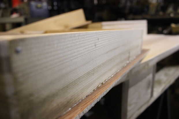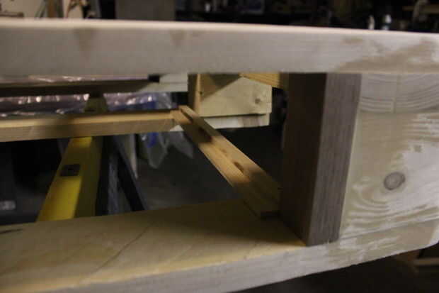 La parte superior de la tabla, he visto muchas plataformas diferentes, así que mina tiene enormes boquetes entre dos listones, que decidí llenarlo con listones de madera de haya, dejando un pequeño espacio entre ellas. Me gusta el look vintage, boxy consiguió.