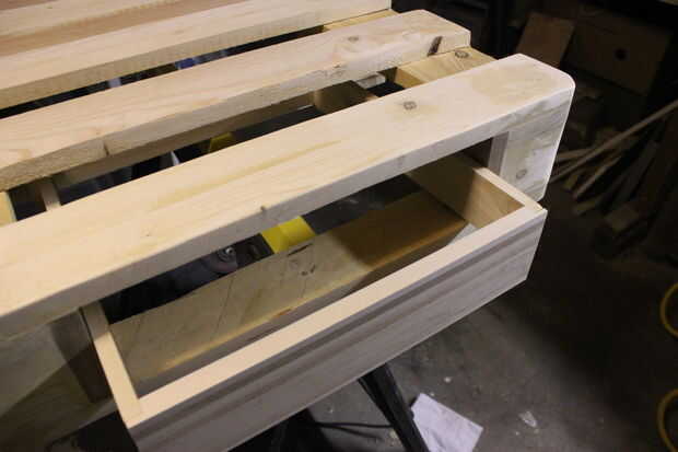 Para una versión ras, medir la distancia entre 2 frente cajón delantero, si ras entonces es la anchura de la plataforma. Restar 2 inchees, luego dividir por 2, le dará la profundidad total del 1 cajón. Medir las piezas necesarias para el marco y pegar sus cajones.