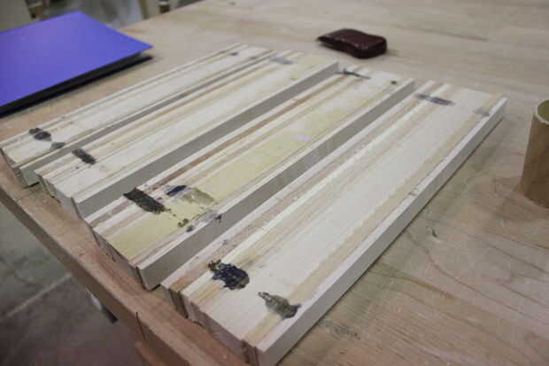 Cortar 8 piezas y pegamento/clavó como se muestra en las fotos. La mayoría de mis pedazos de madera para esta tabla se utiliza un poco crudo. Así que trato de adaptarla lo más posible para evitar cortar con herramientas eléctricas. Sobre todo es hecho a mano para que casi cualquiera puede construir uno.