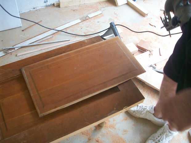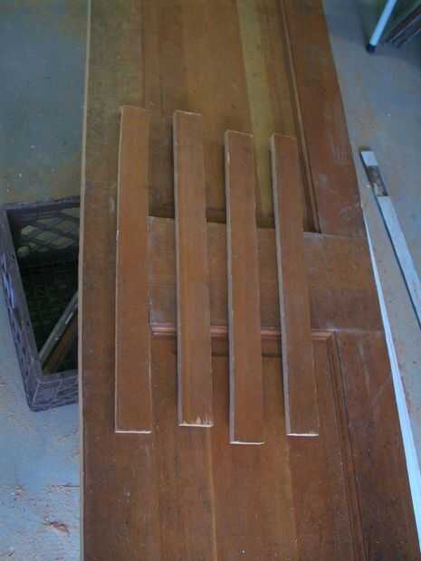 tomé el interior de la puerta (vista en el cuadro de la última etapa) y cortar en rajas para forrar el exterior de mi mesa. No es un paso necesario, pero se ha añadido mucho a mi mesa. Lo hace no tan amplia y agregado más de una mirada de madera a la mesa.