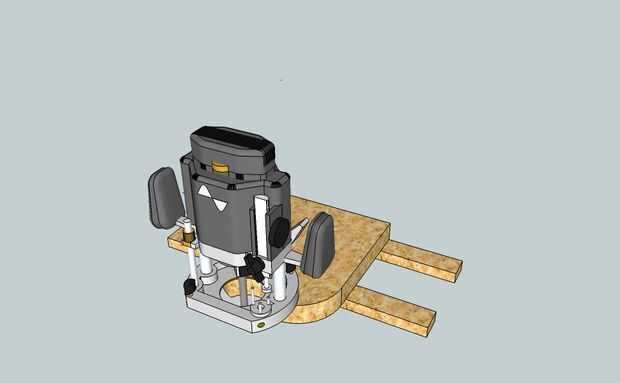 Lo que hice fue crear una especie de plataforma para el router para que cuando la plataforma montó los extremos de las patas la broca de fresadora seguiría el mismo camino. Esperemos que las fotos y el modelo de sketchup explicaron esto mejor que tengo.