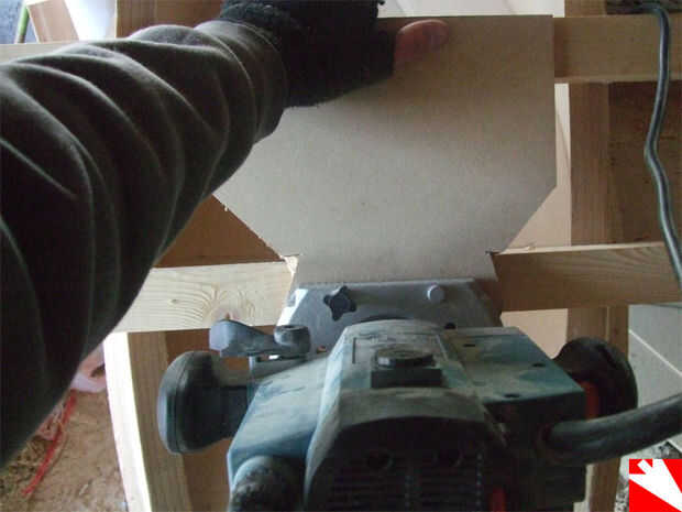 Este jig corte la tabla superior a un punto frágil así que fijar un listón a través de él y había cuadrado. Esto se dio sobre un borde grueso de 5mm en el punto final.