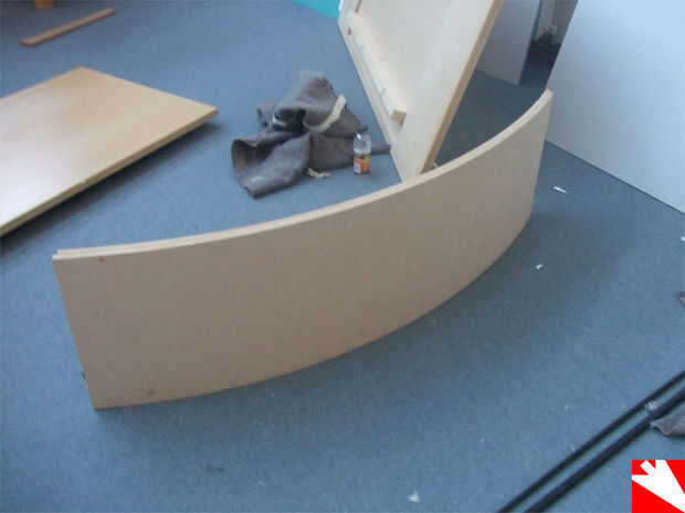Si usted apriete las cosas son un poco más simples. Acaba de poner su sándwich laminado en la primera, lugar bares a través de él y abrazadera. A partir de la media es probablemente la mejor opción. Prueba esto y perfore los orificios en el anterior para las abrazaderas si necesita ser. Creo que utilicé una sierra de agujero de 50mm para hacer esto.