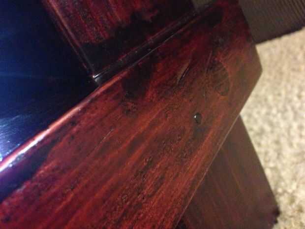 Entonces al día siguiente nos arena sobre todas las superficies con una lana de acero 00 (por las instrucciones de las manchas) de la mano, hice otra capa y deja seque durante la noche, así.