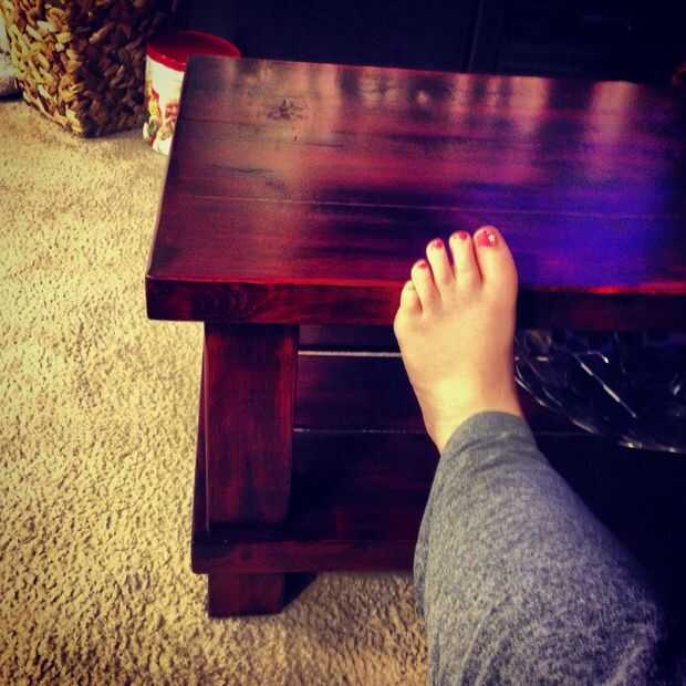 Luego hicimos una capa de Minwax Polyshades en Bombay caoba en acabado satinado en toda la mesa y deje que se seque durante la noche.