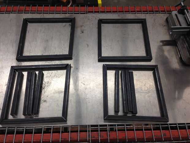 el marco de esta mesa de centro se hace de la madera contrachapada. se podría ser "pelado" con casi cualquier material. Esta es la segunda vez hice esta pieza. la primera i utiliza finos corto "retazos" de madera recuperada y montado s