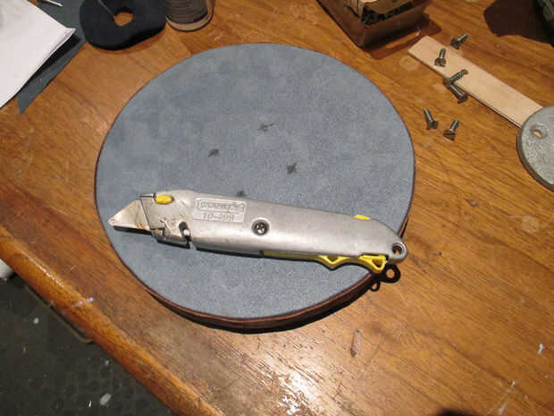 Centrada en la brida de la base, había trazada por los orificios, luego cortar x poco con mi cuchilla.