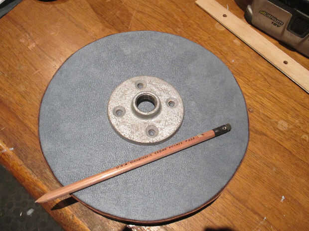Luego perforar los orificios piloto, a la brida de la base y había atornillado al otro lado del polo en.