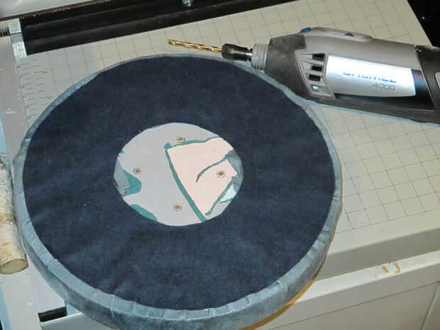 Una vez que el fieltro se pega abajo (presiona firmemente, luego puesto bajo peso pesado durante una hora), lugar del reborde en marca los agujeros de tornillo.