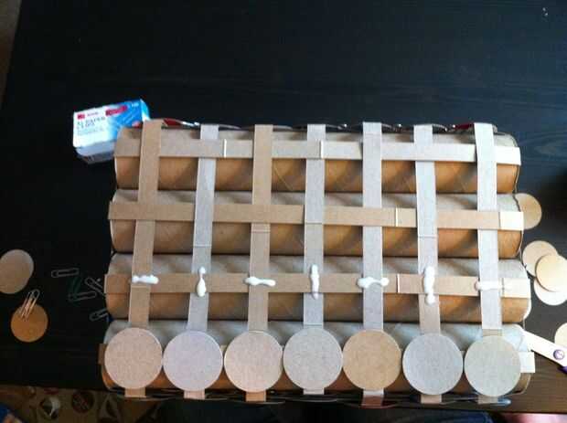 Asegúrese de que el medianas correas tejidas son espaciadas uniformemente y luego pegar los círculos en puede que necesite utilizar clips de papel para aferrarse como el seco