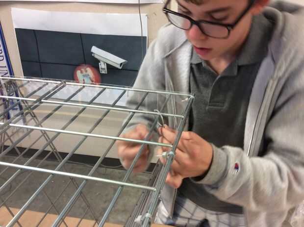 Fijar las hojas de acrílico en la cubierta del alambre con la boquillas hacia abajo. Debe quedar entre los 30" levantado los travesaños.