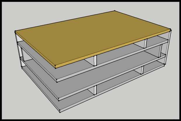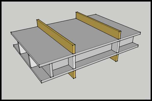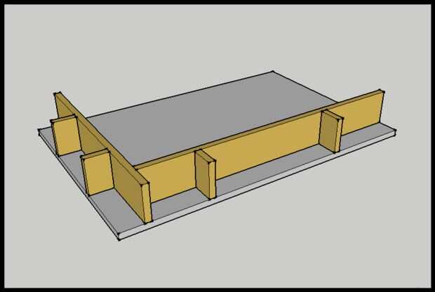 La Asamblea de la gran parte es idéntica, pero las dimensiones son ligeramente más grande. La separación dentro de esta pieza es de 208mm, como el pedazo de centro es de 206mm de espesor, lo que resulta en un espacio de 2mm, así.