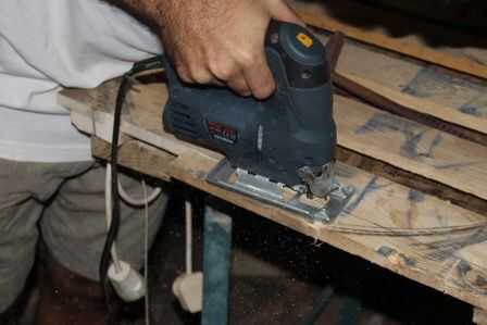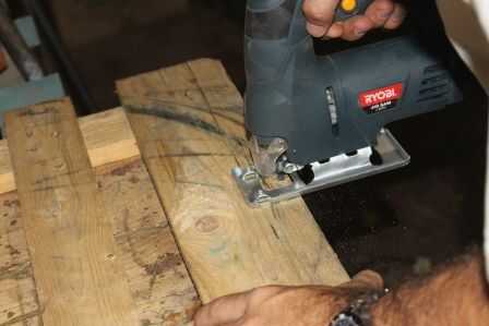 Como usted puede recordar del paso 3, la pieza de abajo es una amplia y estrecha de 3 piezas, bueno necesito 4 piezas estrechas. Así que lo que estoy mostrando aquí es cómo cambiar en exactamente eso. Primero marque la cantidad que quiero sacar de la pieza amplia, la he utilizado la regla para obtener una línea recta que corte. Luego usé la sierra caladora hacer cortes hasta la línea, resultando en cortes mucho más cortos, cuando he tenido que dividir la pieza amplia. (Esto es un Consejo valioso para usar ya que reduce notablemente la posibilidad de sesgo debido a la falta de concentración en un corte largo de corte). Entonces yo sólo corte todas las piezas restantes que se destaca.