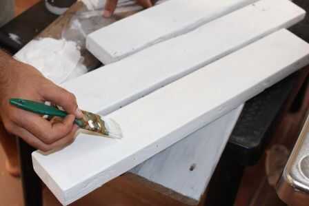 Decidimos ir para un acabado de dos tonos por lo que mi esposa hizo la parte de pintura. Ella confunde algunos pintura gris con blanco y negro y continuó pintar las dos superficies con esto. Fuimos con blanco para las piernas y apoya.