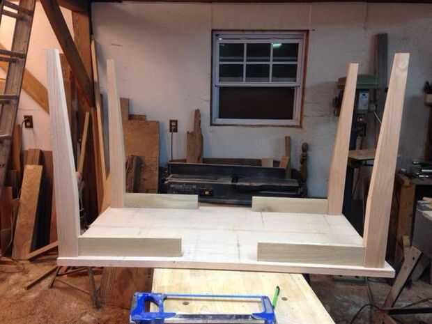 Intentar crear un poco de contraste, roble blanco fue utilizado para las piernas más cortas y delantal. Todo en este momento ha sido sólo seco para llegar a los pasos de ejecución. Obviamente, un lado de las piernas debían doblar en el otro lado para que funcione. Mi decisión fue hacer un extremo más pequeño que el otro en vez de alternando cada pierna.
