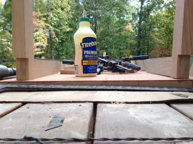 Al final de las piernas fueron cortadas para la inserción de "delantal" que ayudan a estabilizar la estructura. La última imagen muestra los "delantales" y refuerzos de esquina se pegan.