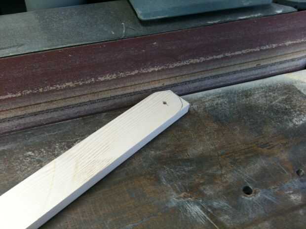 Taladre un agujero en el medio, 1" desde el final de su madera y redondear este extremo como se muestra en la imagen.