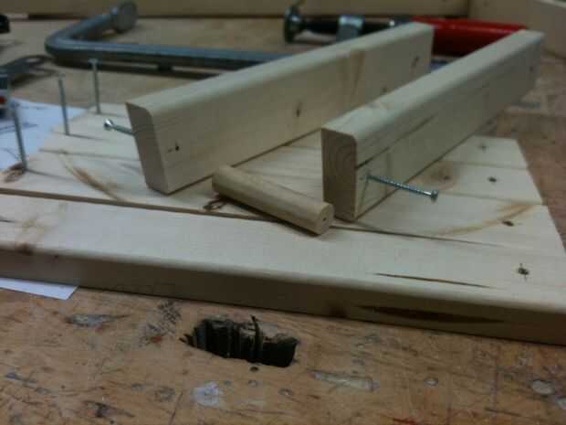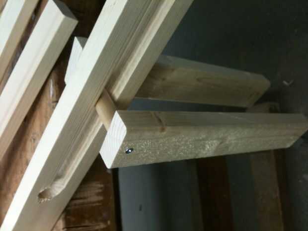Conectar 2 piezas por 1 pieza de 1/2 redonda de madera, 3" largo y en forma en las ranuras en el marco de la x.
