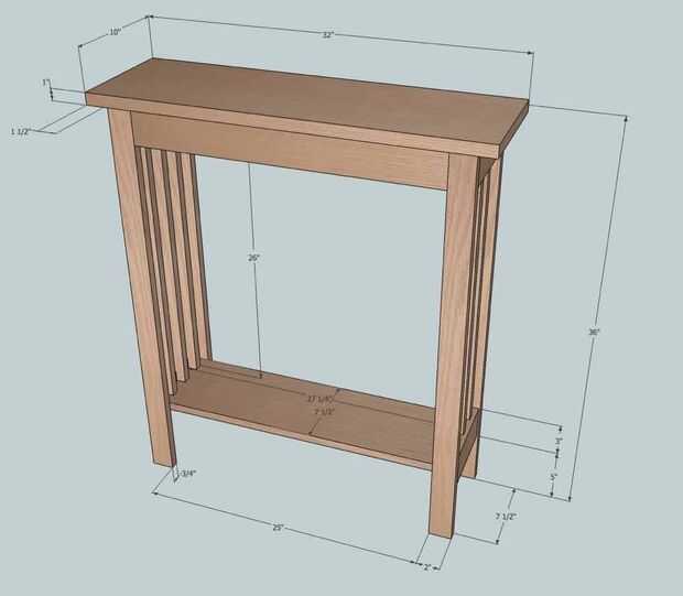 Hice alguna búsqueda en línea y vieron muchas ideas diferentes. He encontrado algo similar a esto, que me gustó bastante. Soy bastante aficionado a la misión de labrar, y tuve algunos roble blanco ya en mano. Roble blanco es muy utilizado en muebles de estilo misión o artesano. Luego trabajé en sketchup para tomar esa idea y producir un plan que se adapta a las dimensiones que tenía en mente.
