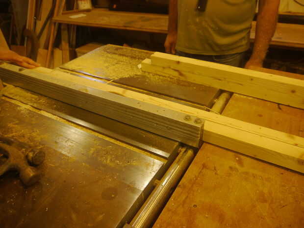 Empezamos por cepillado de la madera de 2 x 4 y 2 x 6 para limpiarlo y tenerlo todo del mismo espesor. Hemos comprado 2 x 4 y 2 x 6 para el proyecto. El 2 x 2, nos sana del 2 x 4 al cuadrado de los bordes y luego sana en la mitad. el 2 x 4 para los travesaños arrancó para formar un borde cuadrado en cada lado de la 2 x 4. (rasga la madera = cortar madera a la anchura de una sierra de mesa)
