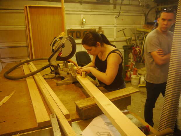 Utilizamos una tronzadora para cortar todas las piezas a excepción de la Junta de 1 x 12 para el estante que cortó en la Sierra de brazo radial. Puede cortar fácilmente con una sierra de mano. La sierra radial del brazo fue cooperador y más generalmente, en que es producir cortes cuadrados plomados para un cambio. Tengo una relación amor y odio con mi sierra de brazo radial.