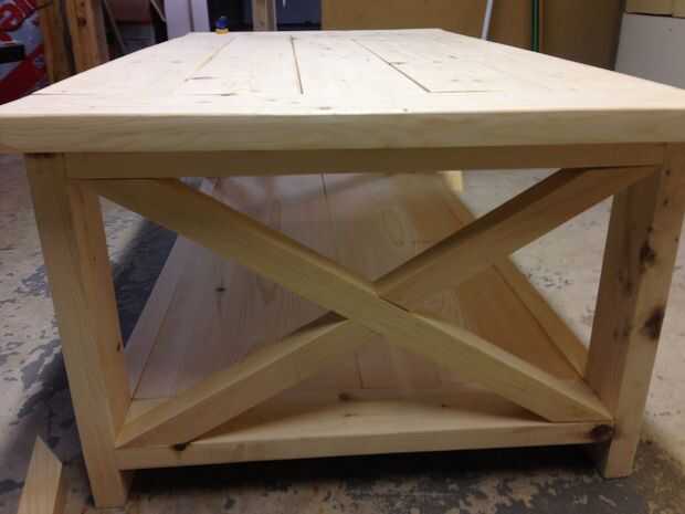 mi hija quería una mesa de centro nueva para su nuevo lugar. Quería hacer un taller de hija de padre del proyecto, combinación perfecta. Ella eligió un estilo rústico diseño de Ann blanco rústico X. La lista de materiales y planes están aquí. Así me